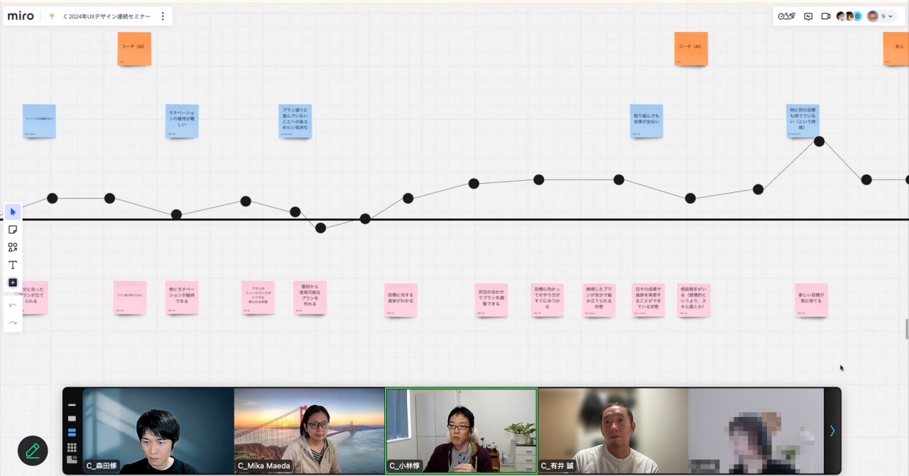 10月28日に開催された第5回目のUXデザイン連続セミナーは、オンライン形式で行われ、「サービスジャーニーのブラッシュアップ」、「解決のためのアイデアづくり」、「キーモーメントの策定」、「プロトタイピング対象の明確化と定義」を行いました。