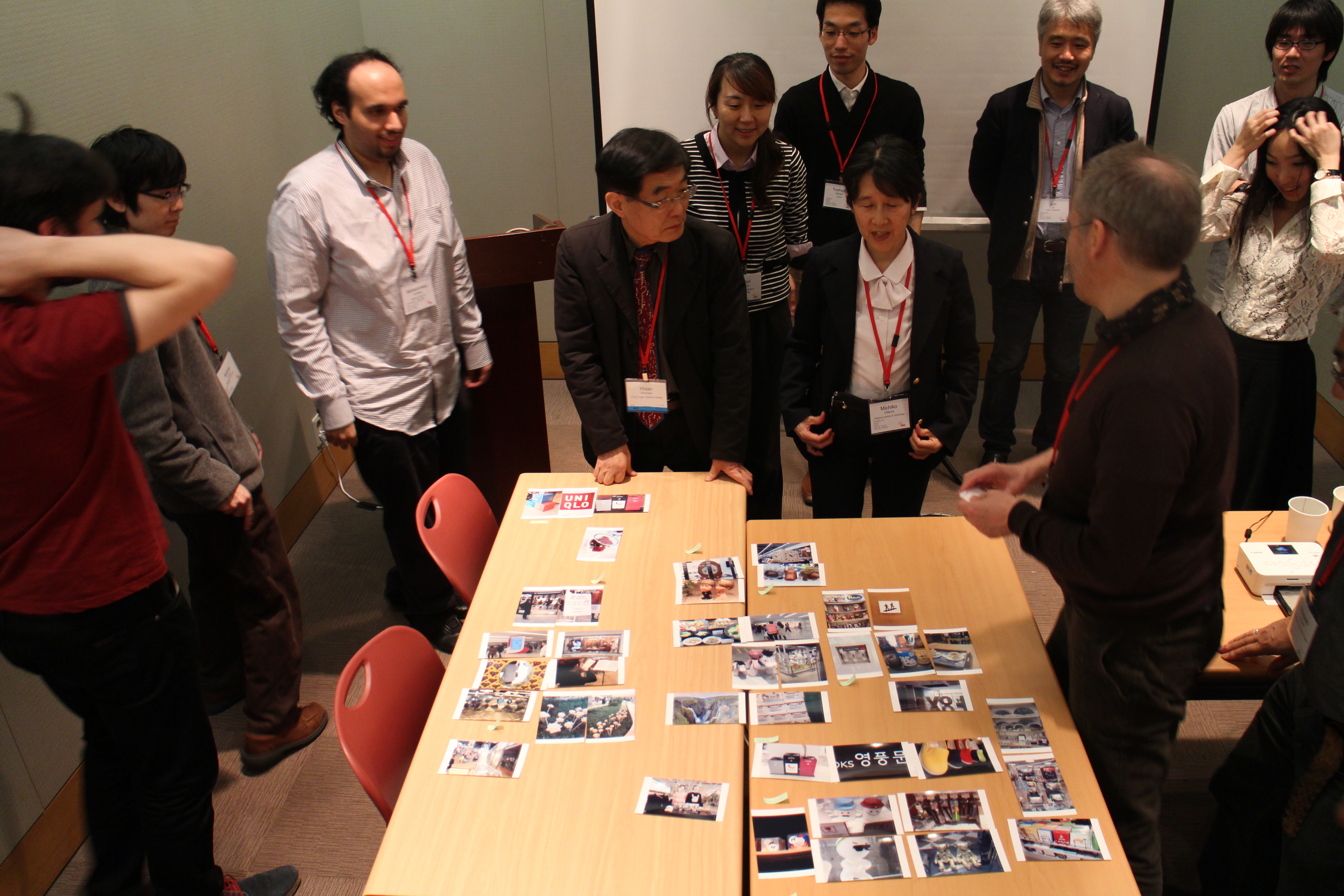 筆者は、Asia CHI Symposium(ACHIS)という枠のなかでKansei and Japanese Cultureという終日セッションを工学院大学名誉教授の椎塚先生と芝浦工科大学の大倉先生と共に主催した。20人ほどの参加者があり、午前中の発表では感性に関連した様々な議論が交わされた。午後はCOEXの地下にあるショッピング街にでて、各自の感性にヒットしたものを写真撮影し、それを会場でプリントし、テーブルを寄せた上に広げてKJ法を行った。午前中の発表でかわいいというテーマに関するものが4件あったため、かなりその方向に引っ張られた写真が多かったが、面白いとか、興味を引かれるといった写真も半数近くあり、それを見ながら議論を行った。